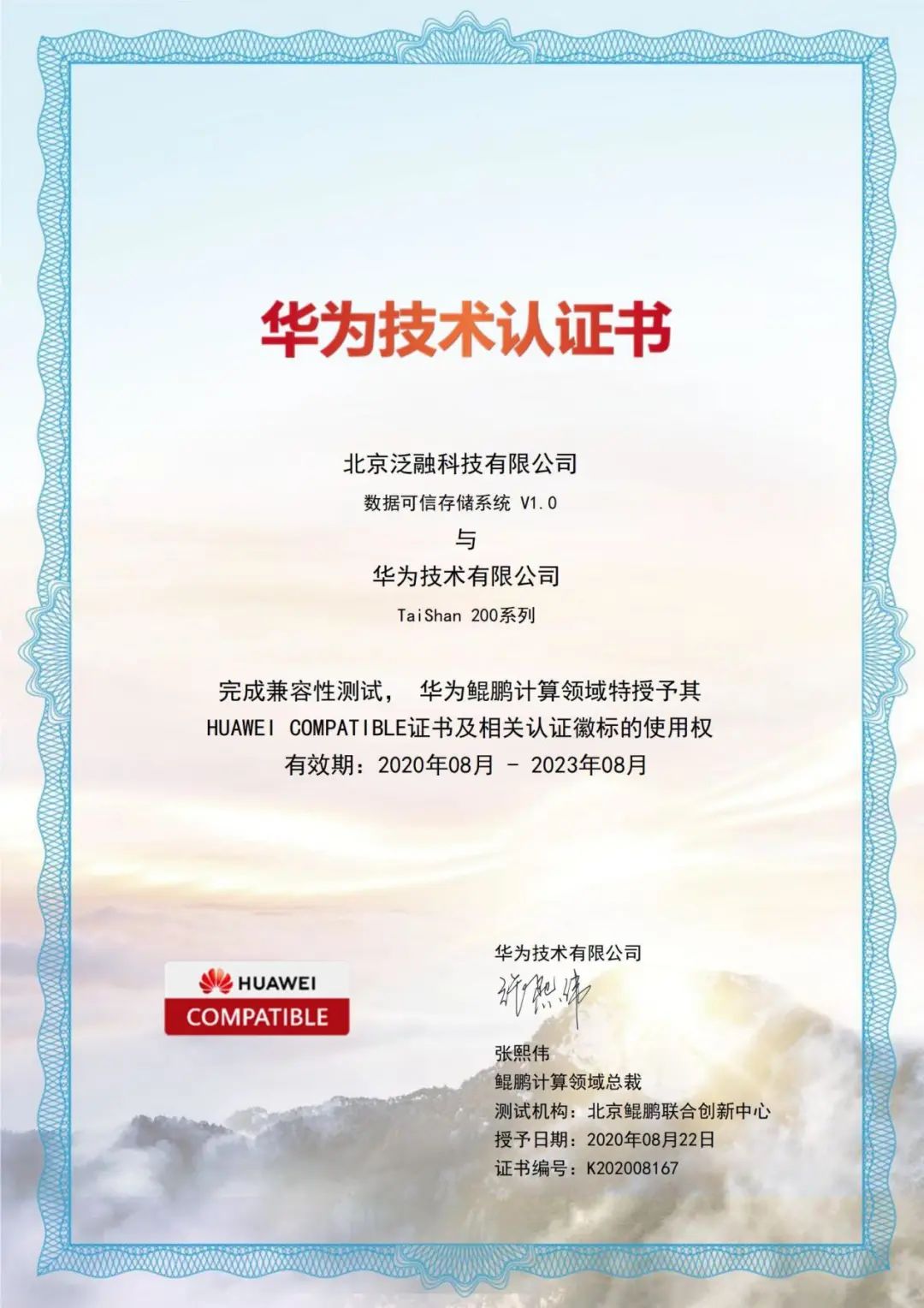 泛融区块链可信存储系统是基于公司蜂巢链手艺研发的一套数据可信文件存储系统,已于2020年10月通过公安部清静与警用电子产品质量检测中心的认证,并通过了华为鲲鹏盘算领域的兼容性验证;该产品可以普遍应用于企业事业单位主要商业文件资料的存真和全方位清静防护、企业间商务文书或有价票据的清静共享、政务机构的政务文书公示、跨部分的政务服务所需打点质料的可信流转等场景。